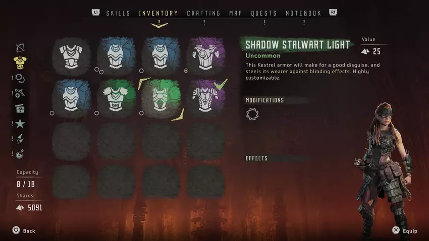- Stealth-pantser: Verbetert Aloy's vermogen om onopgemerkt te blijven, wat ideaal is voor degenen die open conflicten liever vermijden en vanuit verborgen posities aanvallen.
