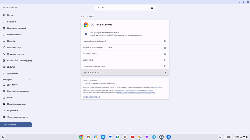 Over het algemeen lijken de logica en het uiterlijk van de interface op de gebruikelijke Windows desktop. We hebben een snelle launcher die desgewenst verborgen kan worden. Er is een menu met alle geïnstalleerde applicaties, een paneel voor snelle instellingen (helderheid, volume, draadloze interfaces, enz.), snelle toegang tot meldingen en de mogelijkheid om je Android-smartphone te koppelen aan een Chromebook en toegang te krijgen tot foto's, gesprekslogs en meer. Chrome OS ondersteunt het maken van verschillende desktops en het gebruik door meerdere gebruikers. De overgrote meerderheid van Android-apps werkt correct. Om apps te installeren die niet uit de Play Store komen, moet je echter overschakelen naar de ontwikkelaarsmodus.