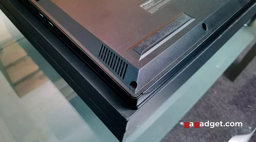 De Acer Predator Helios 16 is een laptop die meer is gepositioneerd als desktopvervanger dan als draagbare oplossing. Daarom zijn de vrij grote afmetingen van 357,8 x 278,7 x 26,9 x 1,9 mm en het gewicht van 2,9 kg vrij verwacht. Het zal niet erg comfortabel zijn om zo'n laptop elke dag mee te nemen naar kantoor. De kwaliteit van de materialen en de montage is erg goed. De panelen buigen niet te veel, zelfs ondanks de grote lineaire afmetingen. Het enige wat ik niet goed vond was het kraken van de scharnieren. Hoewel dit misschien een kenmerk van het monster is na vele reviews.