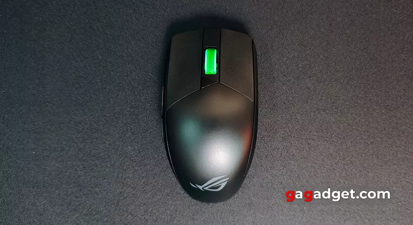 Het ROG-logo op de bovenkant van de muis is niet verlicht, maar grijs.