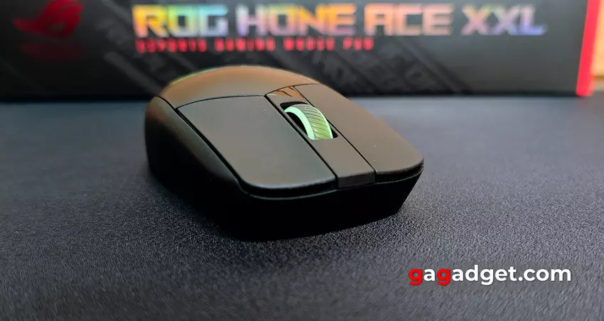 ASUS ROG Micro Switch schakelaars in de hoofdknoppen hebben een opgegeven levensduur van 70 miljoen klikken. Ze hebben een korte, duidelijke en zeer informatieve klik. Het geluid is niet erg hard. Extra knoppen worden ook duidelijk ingedrukt en hebben een duidelijke tussenruimte, zodat het moeilijk is om een fout te maken. Het scrollwiel is stil bij elke snelheid en de cutoffs zijn duidelijk en informatief.