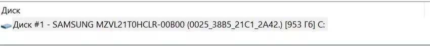 De gebruikte schijf is een Samsung PM9A1 M.2 NVMe PCIe Gen4 x4 met een capaciteit van 1 TB.