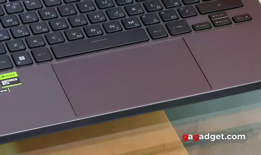 Het touchpad heeft een aangename glazen coating en grote afmetingen van 128x76 mm. Het is ruim voldoende voor werk, de noodzaak om een muis aan te sluiten ontstaat alleen tijdens het gamen.