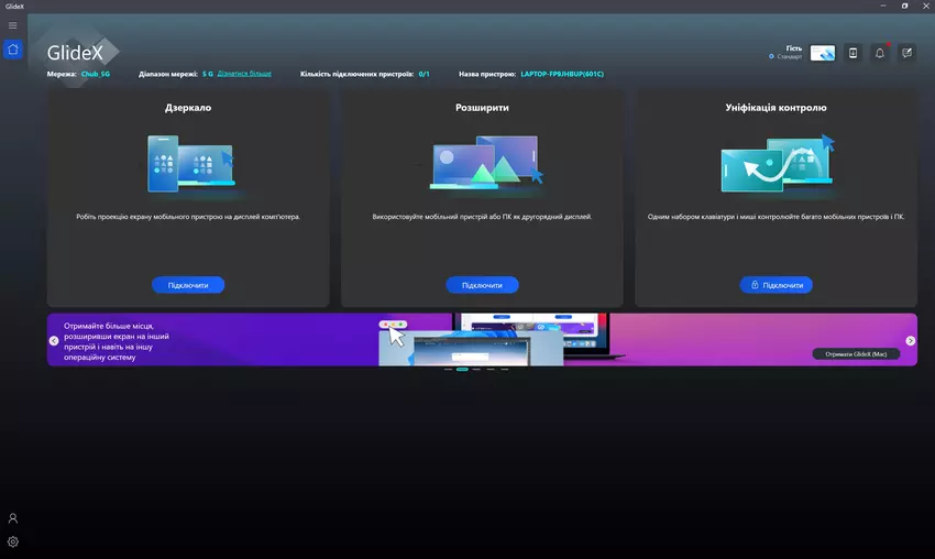 En GlideX voor snelle smartphoneverbinding, gegevensoverdracht en gebruik als extra scherm: