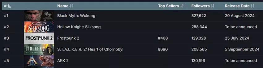 De Chinese actiegame Black Myth: Wukong staat bovenaan de lijst van meest geanticipeerde games op Steam.