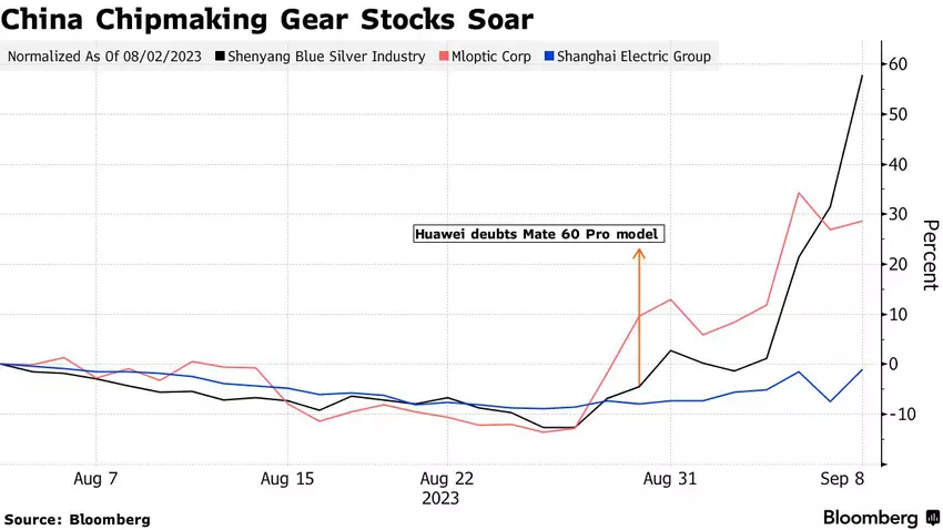 Dit heeft geleid tot meer vertrouwen van investeerders in de Chinese halfgeleiderindustrie. Bedrijven die chipapparatuur produceren zijn sterk gestegen.