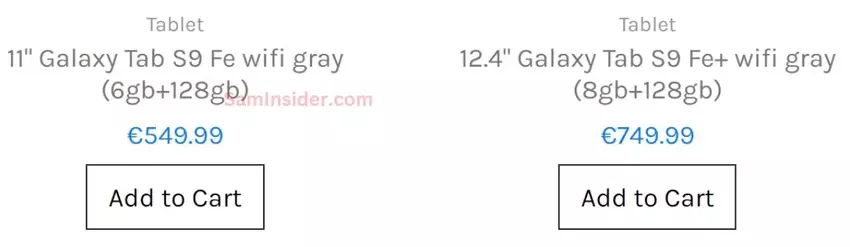 Volgens het lek zal de Galaxy Tab S9 FE met een 11-inch scherm en 6/128 GB modificatie worden verkocht voor 549 euro. De 12,4-inch Galaxy Tab S9 FE+ krijgt 8GB RAM en dezelfde opslagruimte. De nieuwigheid kost 749 euro.