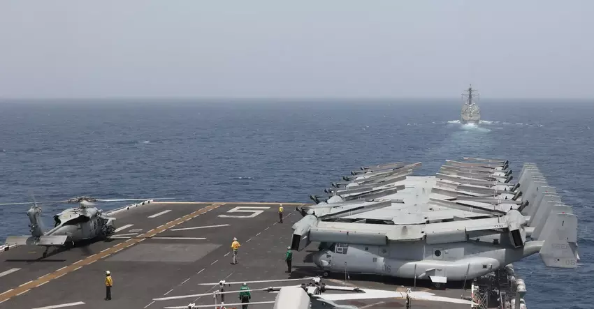 Iraanse beelden tonen de aanwezigheid van AH-1Z, UH-1Y en MH-60 helikopters in het luchtruim tijdens de doortocht. Dit is een typische manier om Amerikaanse schepen te verdedigen die de Straat van Hormuz oversteken.