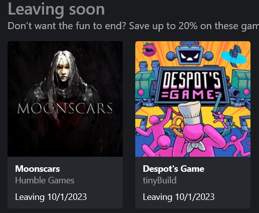 Game Pass heeft de sectie "Leaving Soon" bijgewerkt, waarin 8 games staan die het abonnement op 1 oktober voorgoed zullen verlaten.