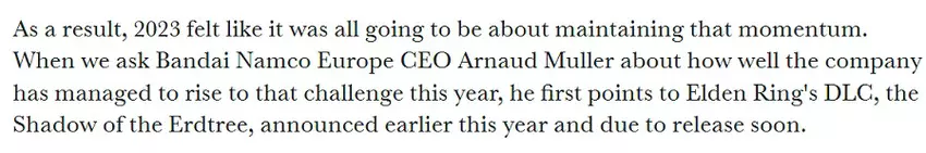 Bandai Namco Europe CEO: "Shadow of the Erdtree add-on voor Elden Ring komt binnenkort uit"