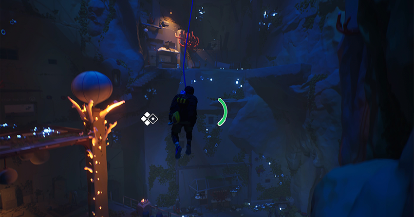 Er kan ook een moment komen waarop het te ver is naar de dichtstbijzijnde richel en je een voorwerp moet weten om het touw aan vast te haken om als bungeekoord te dienen en naar de volgende klimplaats te vliegen.