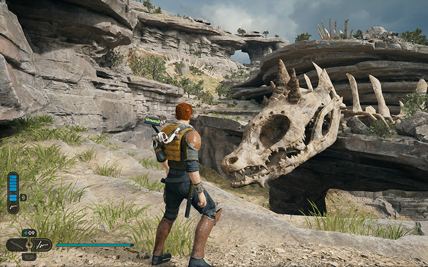 In vergelijking met Fallen Order is de customization uitgebreid. Door de dozen te openen die overal verspreid liggen, kun je nieuwe kostuums voor Cal, kapsels, onderdelen voor het lichtzwaard en de BD-1 assistent-droid openen. Het stimuleert je ook om de wereld te verkennen, want als je de jagerscape al hebt vrijgespeeld, wil je de broek uit de bijbehorende set vinden. Overigens kun je het uiterlijk van Cal op elk moment veranderen door het spel te pauzeren.