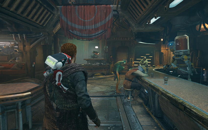 Ook hier is niet alles zo goed als we zouden willen. Heel vaak is er een merkbaar laden van objecten en texturen in het frame (soms zo merkbaar dat het grappig begint te worden). En er zijn ook genoeg niet-kritieke visuele bugs. Soms gaat een zwaard door Cal's pak, soms gaat een voorwerp een eigen leven leiden en begint hij als een gek te knipperen.