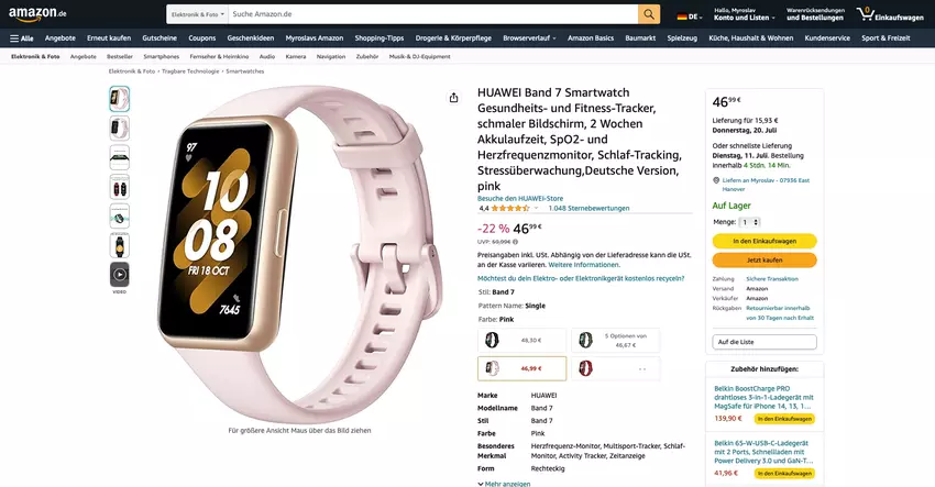 Huawei heeft de prijs van de Band 7 slimme armband verlaagd.