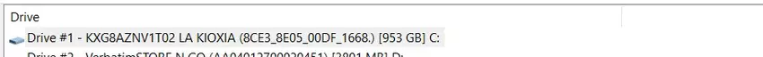 De gebruikte schijf is een 1TB XG8 SSD van KIOXIA (voorheen Toshiba Memory) met een PCI-E 4.0 4x interface. De opgegeven leessnelheid is tot 7000 MB/s en de schrijfsnelheid tot 5600 MB/s.