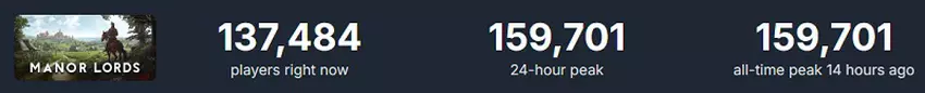 Op de dag van de release bereikte de piek van de online Manor Lords de 160 duizend mensen, en dat op een werkdag! Het komende weekend zal dit aantal zeker aanzienlijk stijgen.