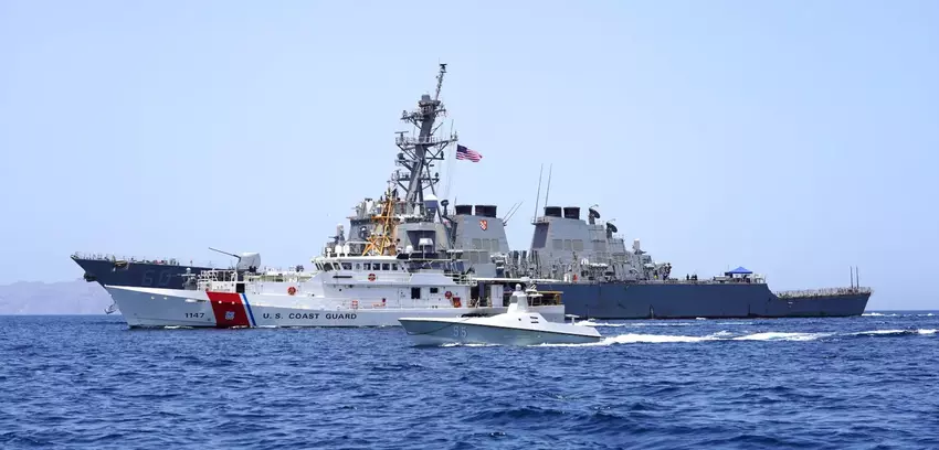 De onbemande boot L3Harris Arabian Fox hielp bij het escorteren van een groep Amerikaanse schepen onder leiding van de destroyer USS Thomas Hudner door de Straat van Hormuz.