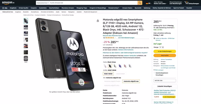 We hebben het over de Motorola Edge 30 Neo in de 8/128GB variant. De gadget kost check price on amazon Er zijn twee kleuren beschikbaar: Black Oniyx en Very Peri.
