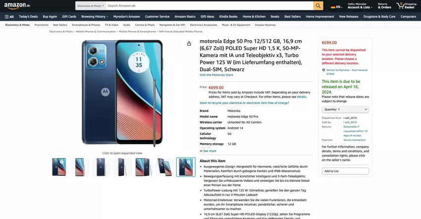 Vooruitlopend op de Europese aankondiging van de Motorola Edge 50 Pro, is het nieuwe product verschenen op de Duitse Amazon.