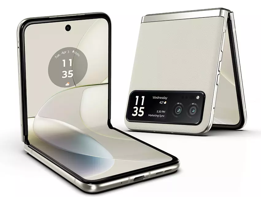 Motorola Razr 2023 heeft twee schermen: het hoofdscherm LTPO OLED FHD+ van 6,9 inch met een verversingssnelheid van 144 Hz en een klein extern scherm voor notificaties met een diagonaal van 1,5 inch. De smartphone wordt ook geleverd met een dubbele hoofdcamera. De hoofdsensor heeft een resolutie van 64 MP gekregen. Deze wordt aangevuld met een 13 MP groothoeklens. De frontmodule van het toestel is 32 MP. De gadget draait op een Snapdragon 7 Gen 1-chip. De smartphone heeft ook stereoluidsprekers, een vingerafdrukscanner aan de zijkant, een 4.200mAh batterij met 30W bedraad opladen en 7W draadloos opladen, een USB-C poort, NFC, Wi-Fi 6E en een 5G modem.
