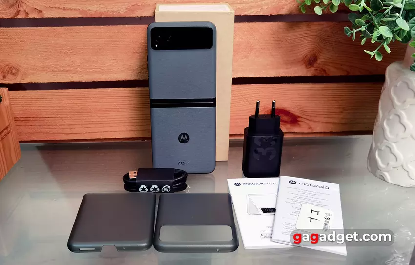 De Motorola Razr 40 is typerend voor de huidige Motorola-modellen. De smartphone is verpakt in een lichte doos met het bedrijfslogo. Binnenin zit naast de Motorola Razr 40 een 33W voeding, een USB Type-C kabel, een houderclip, documentatie en een tweedelige plastic beschermende bumper. Het is doorzichtig en heeft een ruw oppervlak. De pasvorm is niet perfect, maar het biedt basisbescherming.