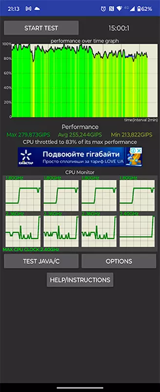 Hoewel het gebruik van een minder krachtige processor ook voordelen heeft. Gewoonlijk raken opvouwbare smartphones oververhit. De Motorola Razr 40 is iets beter: de prestatievermindering onder langdurige maximale belasting kan oplopen tot 83%, wat goed is voor deze vormfactor. Het gebied in de buurt van het externe beeldscherm wordt warm.