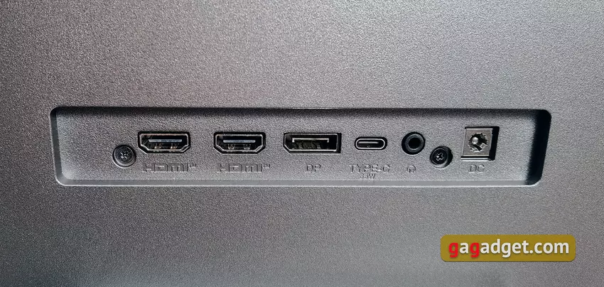 Er zijn genoeg aansluitingen. Er zijn 2xHDMI 2.0b, 1xType-C (met DisplayPort ondersteuning), DisplayPort 1.2a, 3,5mm audio en USB Type-C met ondersteuning voor video-overdracht en 65W opladen. Dit is erg handig voor gebruik met moderne ultrabooks. Eén enkele kabel kan worden gebruikt om aan te sluiten en stroom te leveren, waardoor het niet meer nodig is om een laptopvoeding mee te nemen naar kantoor.