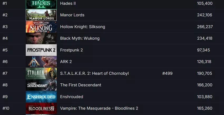 In de top 10 van meest verwachte games staan Hollow Knight: Silksong, S.T.A.L.K.E.R. 2: Heart of Chornobyl en Frostpunk 2.