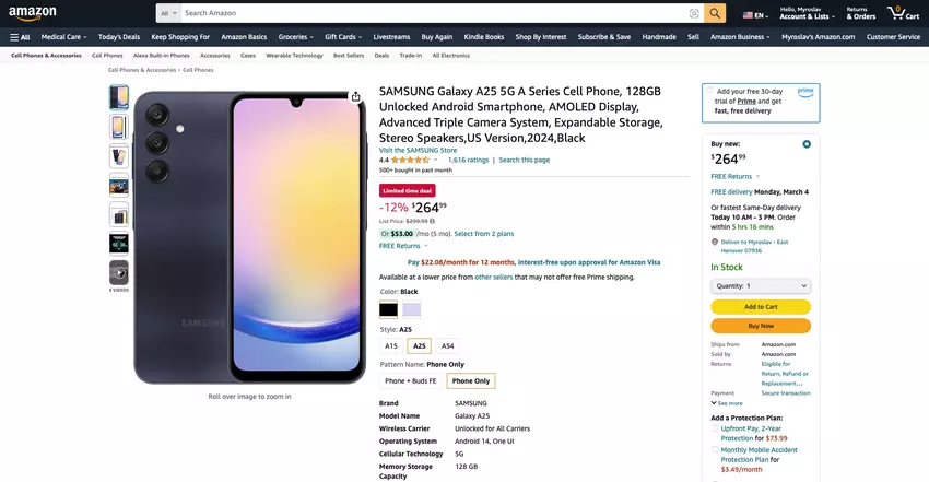 Aanbieding van de dag: de Samsung Galaxy A25 5G op Amazon voor $35 korting
