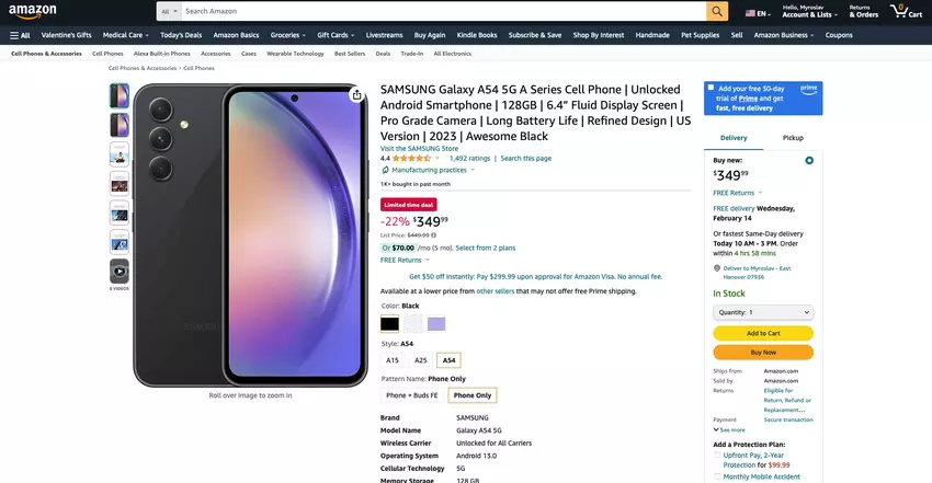 Niet alleen Galaxy Buds 2: Samsung Galaxy A54 5G is ook verkrijgbaar op Amazon voor een promotieprijs