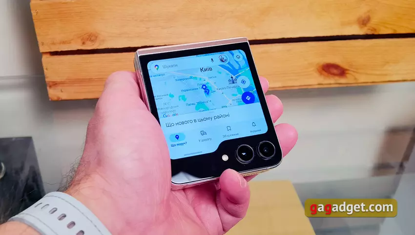Ingeklapt is de smartphone dankzij het compacte formaat gemakkelijk mee te nemen in bijna elke broekzak. Maar het uitklappen van de Samsung Galaxy Flip5 is nog steeds niet erg handig, net als elke andere moderne opvouwbare smartphone met een flexibel display. Het is extreem moeilijk om het met één hand te doen zonder het interne display te beschadigen. Maar dankzij het vergrote externe display is het nu heel comfortabel om onderweg bepaalde handelingen te verrichten zonder de smartphone te hoeven openen.