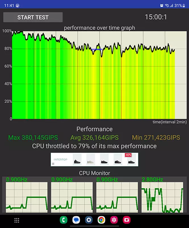 Er wordt beweerd dat er een verdampingskamer wordt gebruikt om de processor te koelen. Bij dagelijks gebruik en tijdens het gamen werkt de smartphone stabiel en wordt hij bijna nooit heet. De behuizing kan een beetje warm worden na 15 minuten spelen van iets zwaars als Diablo Immortal. Uit de stresstest blijkt dat de processor bij langdurige maximale belasting toch iets oververhit raakt en de prestaties tot 79% kunnen dalen.