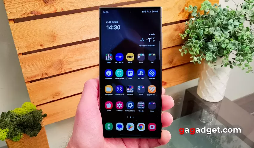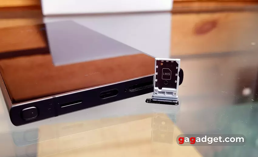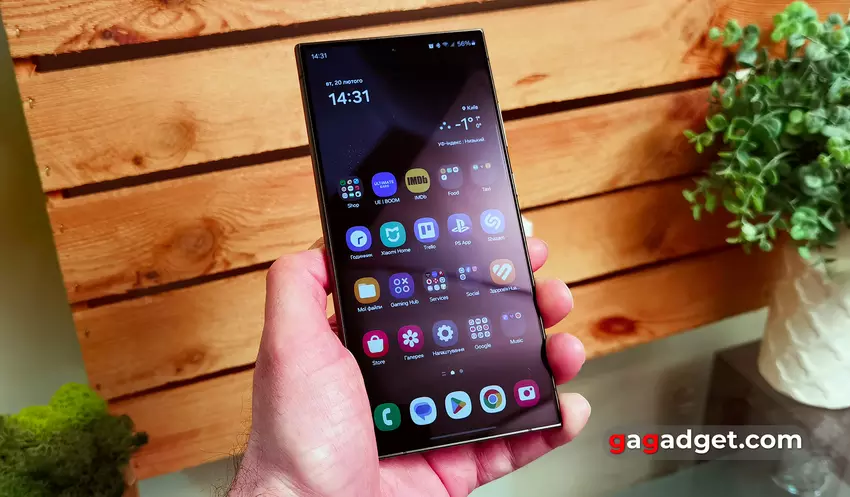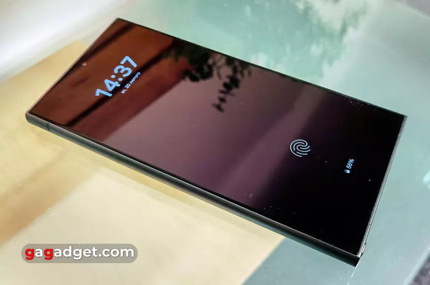 Op het eerste gezicht zijn het uiterlijk en het ontwerp vrijwel identiek aan de Galaxy S23 Ultra van vorig jaar, alles is vrij vertrouwd. Rechthoekige vorm met rechte hoeken, minimale randen rond de omtrek van het scherm en een camera in een klein rond gat. Maar er zijn nog steeds enkele verschillen, en die zijn behoorlijk significant. Het display heeft iets andere, langwerpigere proporties, waar we later dieper op in zullen gaan. Het scherm en de achterkant worden beschermd door een nieuw glas: Corning Gorilla Armour. Het is natuurlijk sterker dan het Corning Gorilla Glass Victus 2 van vorig jaar en beter bestand tegen krassen en vallen. Maar een andere eigenschap van het nieuwe glas is dat het veel minder schittert. Tenminste, dat beweert Samsung. Er is geen manier om het te vergelijken met het vorige model, dus we zullen moeten vertrouwen op de marketing van het bedrijf. Een ander belangrijk verschil is dat Samsung heeft besloten om het scherm helemaal plat te maken. Veel gebruikers zullen deze stap zeker positief beoordelen.