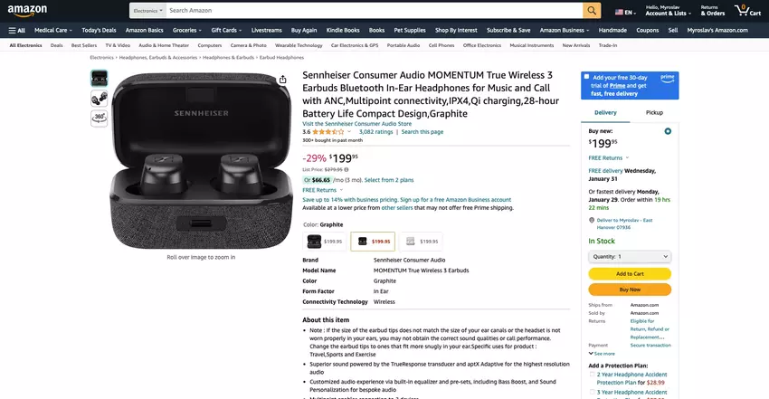 Sennheiser MOMENTUM True Wireless 3 met ANC is verkrijgbaar bij Amazon voor $80 korting