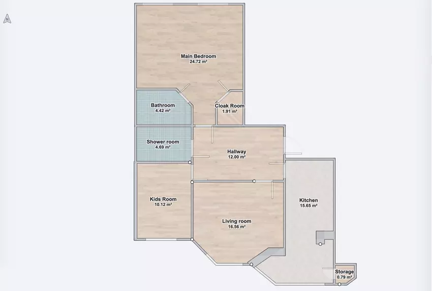 Om de kans op ontwerpfouten te verkleinen (helemaal in het begin kun je niet eens precies zeggen hoeveel ruimte er overblijft en wat de afstanden tussen de muren zullen zijn na het pleisteren), heb je natuurlijk een plan nodig. Ik ben begonnen met het zorgvuldig opmeten van alle afstanden met een meetlint en het maken van een plattegrond. Hiervoor heb ik de online editor Homestyler gebruikt. Het is niet perfect, maar het is vrij krachtig, hoewel je, als je nog nooit met dergelijke tools hebt gewerkt, bereid moet zijn om er uren aan te besteden om het op zijn minst onder de knie te krijgen. In eerste instantie helpt het plan je te begrijpen of je alles kunt realiseren waar je van droomde (helaas moesten we bijvoorbeeld afzien van een tweedeurs koelkast). En om in te schatten hoe de kamer eruit zal zien met meubels (de set meubels in Homestyler is beperkt en duidelijk niet ontworpen voor ons leven, maar toch).