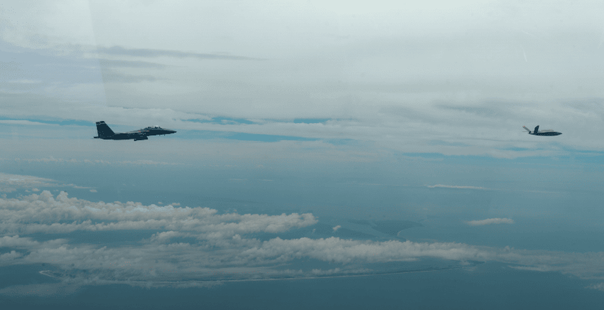 Tijdens een testvlucht vloog de XQ-58A Valkyrie drone naast een F-15E Strike Eagle gevechtsvliegtuig. De Amerikaanse luchtmacht is van plan om in de toekomst gevleugelde drones te gebruiken met vliegtuigen van de zesde generatie en de F-35 Lightning II.