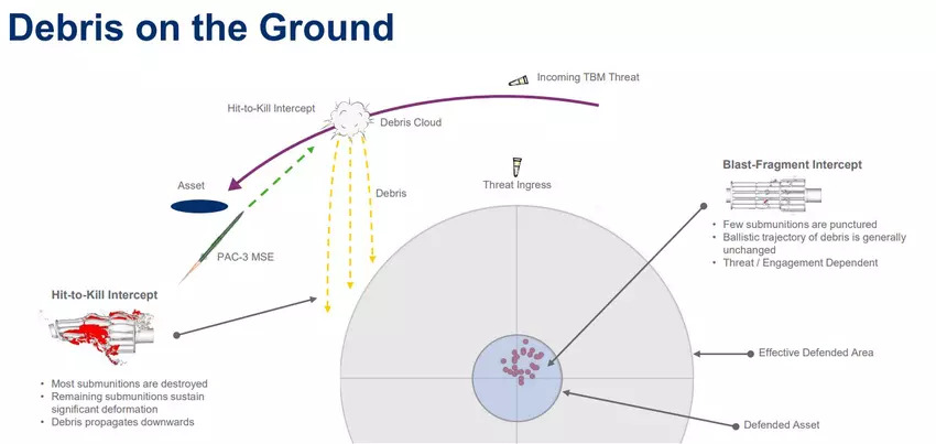 Als het gaat om ballistische dreigingen, kunnen deze alleen in de eindfase van de vlucht worden onderschept. Hiervoor beschikt de Oekraïense luchtmacht over luchtverdedigingssystemen SAMP/T en MIM-104 Patriot PAC-3. Hoewel de ballistische raket wordt geraakt, valt het wrak ervan op de grond, samen met het wrak van de raketonderschepper, waardoor de kernkop verdwijnt.
