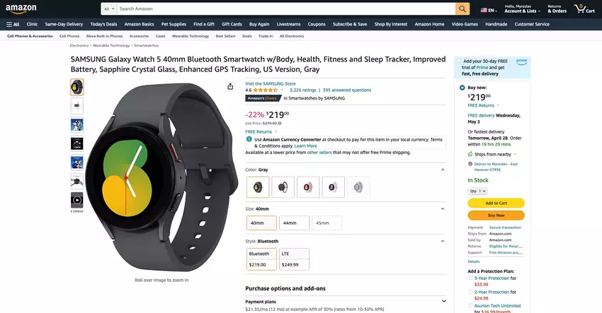 - Samsung Galaxy Watch 5, 40mm (Bluetooth + LTE) - $289.95 $329.99, -12%.