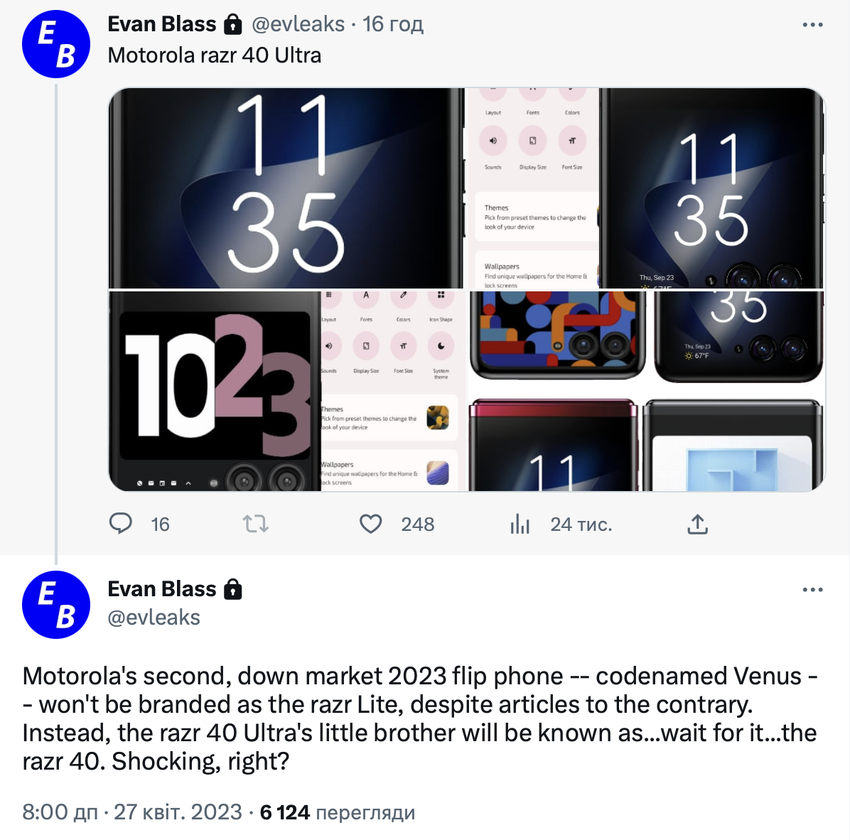 De noviteit wordt in mei of juni uitgebracht. Overigens bereidt Motorola naast de Razr 40 Ultra ook een Razr 40 (aka Razr Lite) model voor op release.