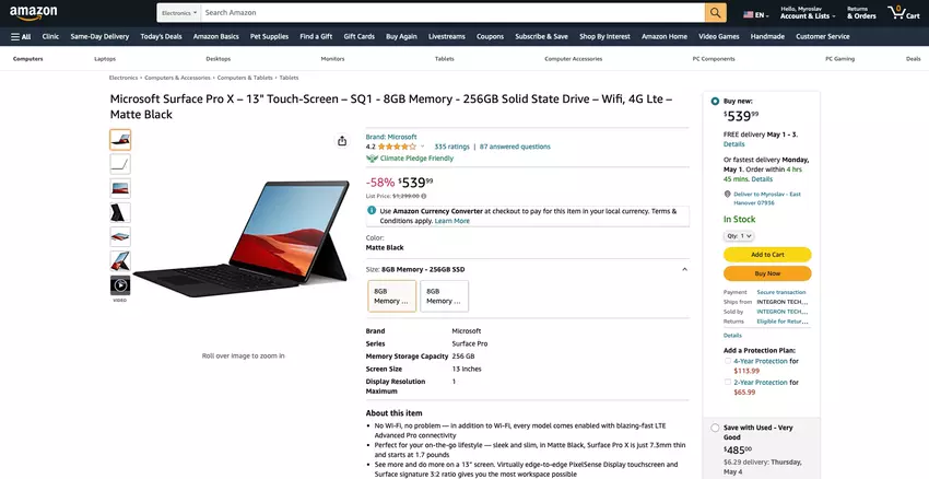 We hebben het over de originele 2019 Microsoft Surface Pro X. De gadget met 8GB RAM en een 256GB SSD is nu te koop voor check price on amazon.