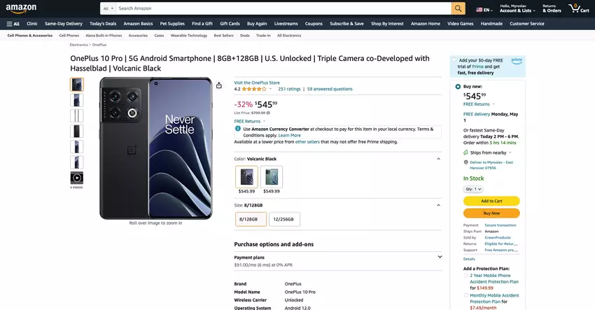 OnePlus 10 Pro 12/256GB - check price on amazon.
