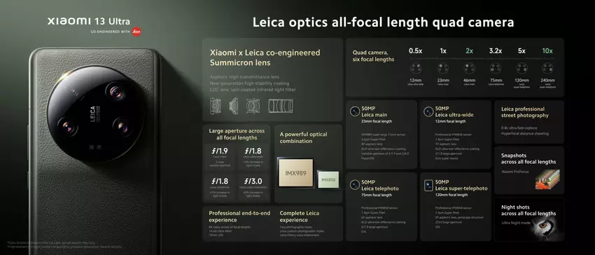 Met andere woorden, het model krijgt vier sensoren met een resolutie van 50 MP. De hoofdmodule zal een Sony IMX989 1" optische beeldsensor hebben, terwijl de andere drie een Sony IMX858 (1/2,51") zullen hebben.