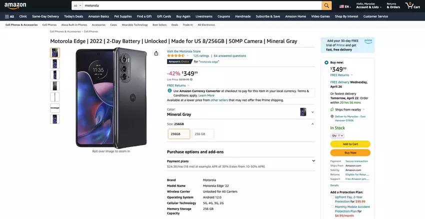 Motorola Edge (2022) op Amazon: smartphone met 144Hz OLED-scherm en MediaTek Dimensity 1050-chip met 250 dollar korting
