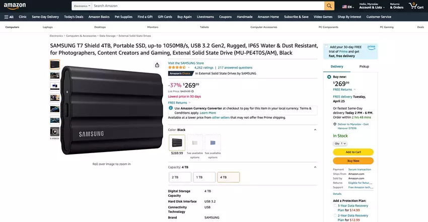 Samsung T7 Shield 4TB SSD met IP65 bescherming op een $160 korting