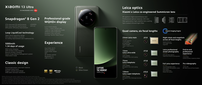 Xiaomi 13 Ultra - Snapdragon 8 Gen 2, vier 50MP camera's, 5x zoom, 120Hz AMOLED TCL C7 scherm en IP68 bescherming vanaf $875