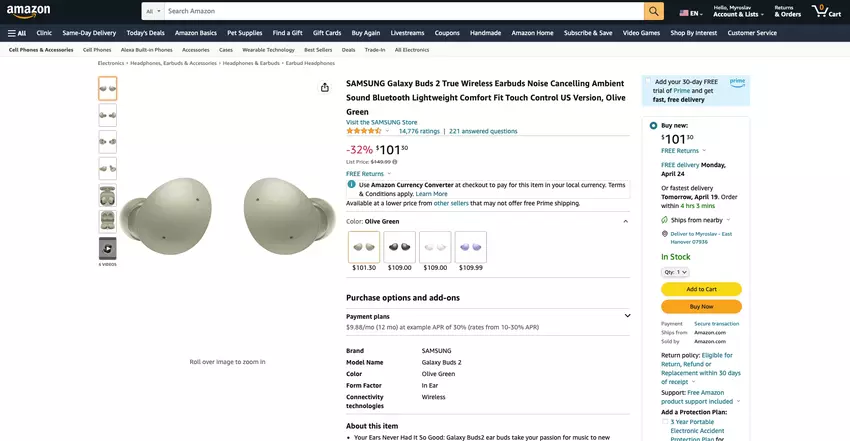 Samsung Galaxy Buds 2 met ANC en tot 29 uur autonomie te koop bij Amazon voor $101 ($48 korting)