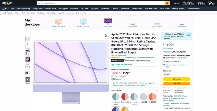 iMac met M1-chip en 256 GB of 512 GB SSD verkrijgbaar bij Amazon voor een gereduceerde prijs van $300