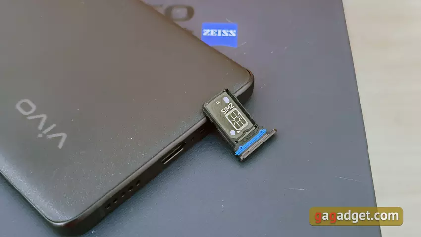 Het frame is van metaal, gelakt met matzwarte verf. De indeling is hetzelfde als bij het oudere vivo X70 Pro+ model. Aan de bovenkant is er een glazen insert met Professional Photography belettering, een microfoon en een IR-poort voor het bedienen van consumentenelektronica. Aan de onderkant is er een luidspreker, USB Type-C poort, microfoon en lade.
