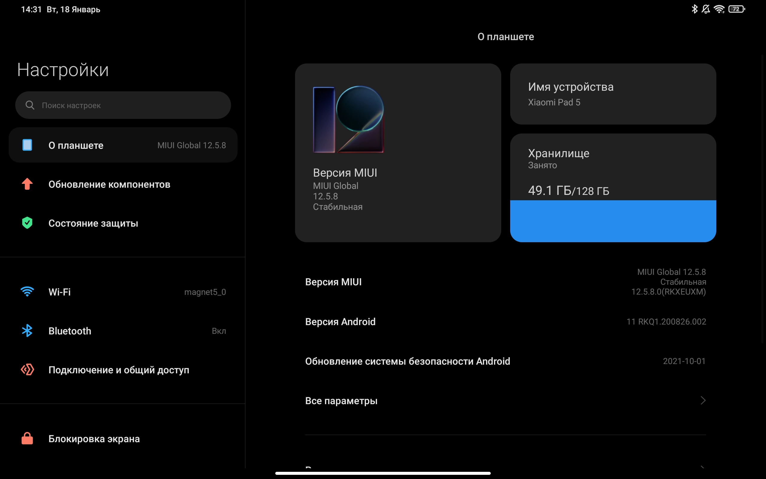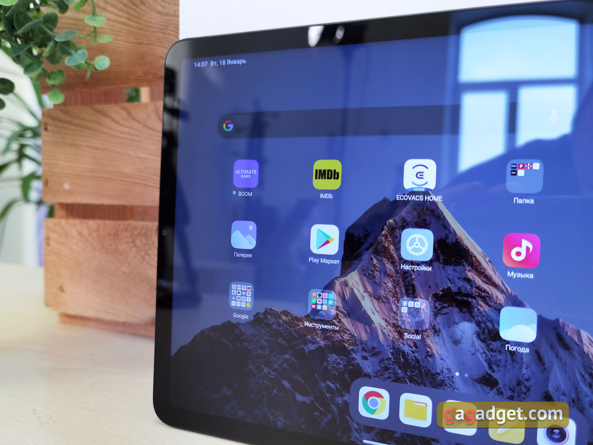 De tablet draait op Android 11 met de eigen MIUI 12.5 schil. De 13e versie op Android 12 is tot nu toe alleen in China uitgebracht. Er zijn geen significante verschillen met de smartphone schil. De interface werd "uitgerekt" tot een groot scherm en aangepast voor portret- en landschapsmodi. Er zijn varianten met locatie van alles op het bureaublad en een optie om een apart menu van applicaties op te nemen. De navigatie is gebaseerd op drukknoppen of gebaren. Van de onbekende chips is het vermeldenswaard het gordijn. Als je vanaf de rechterkant van de bovenrand van het scherm naar beneden beweegt, komt er een paneel met schakelaars tevoorschijn. Aan de linkerkant de meldingen. Het enige wat ontbreekt is de "desktop" modus, die bijvoorbeeld wel beschikbaar is in de Xiaomi Mi Mix Fold. Waarschijnlijk wordt deze toegevoegd met nieuwe firmware.