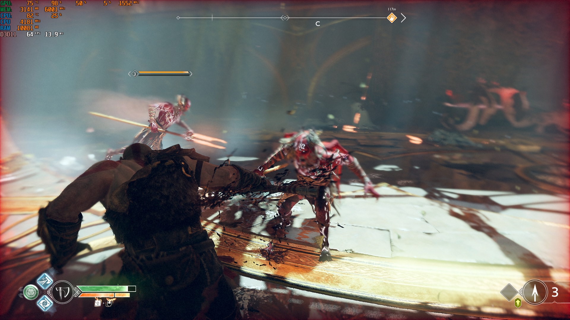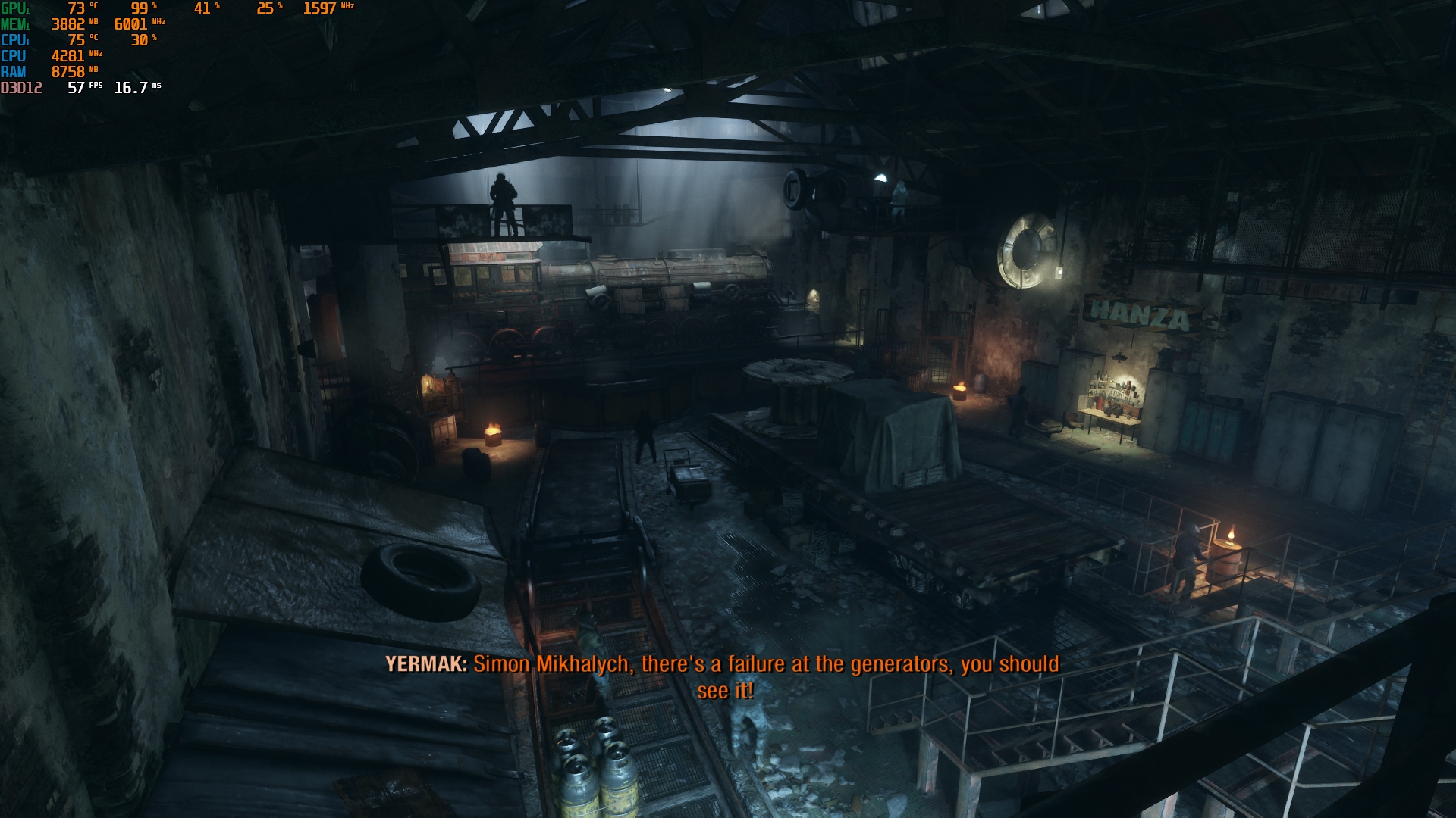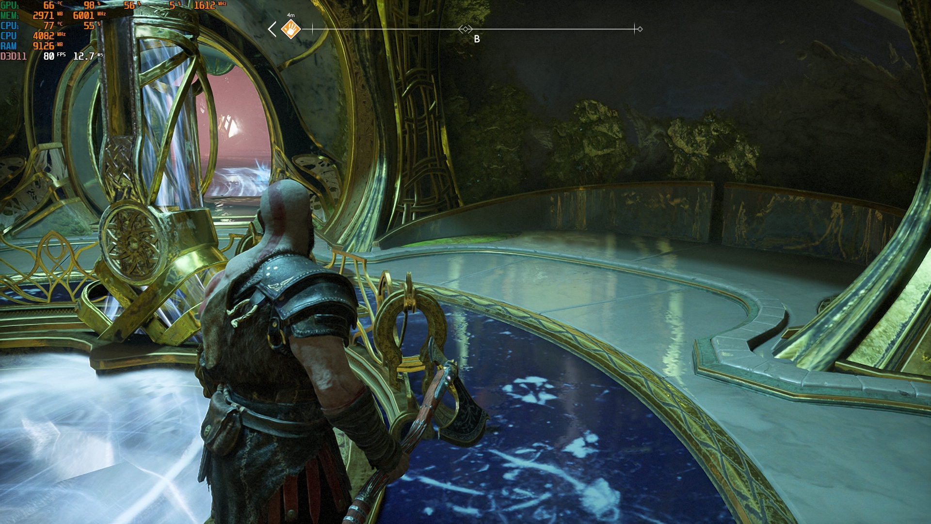 De notebook setup maakt het mogelijk om comfortabel alle moderne games te spelen in native FullHD resolutie op medium instellingen en krijgt fatsoenlijke FPS. Het belangrijkste is om niet te overklokken. Bijvoorbeeld, Control op lage/medium instellingen, maar met raytracing draait op 40-50 FPS. God of War op medium instellingen en DLSS in kwaliteitsmodus - van 60 tot 80 FPS. Metro Exodus op hoge instellingen met Ray Tracing, DLSS in kwaliteitsmodus zonder vlakvulling, en Hairworks op 60 FPS. The Ascent op maximale instellingen maar zonder ray tracing is 90-110 FPS. Tracing laat de framerate onmiddellijk dalen tot ongeveer 20 FPS. Screenshots met FPS en de gebruikte grafische instellingen: